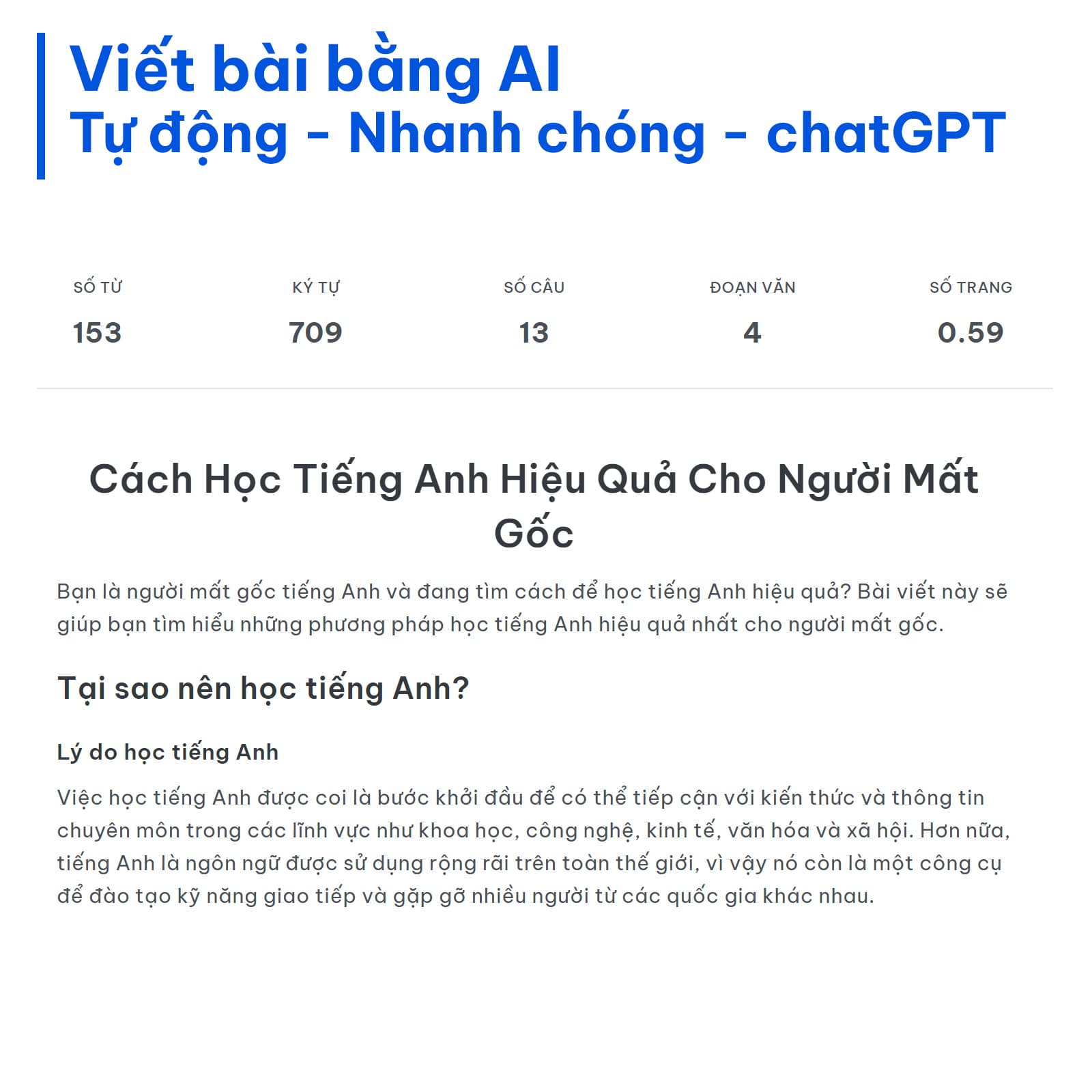 Điều đặc biệt về AIKTP là tính năng tự động viết bài 100%, với nội dung dài từ 1.000 - 2.000 từ, giúp bạn tiết kiệm thời gian và nỗ lực trong việc tạo ra nội dung chất lượng. Bạn có thể lựa chọn ngôn ngữ cho bài viết của mình, bao gồm tiếng Anh, tiếng Việt, tiếng Pháp, tiếng Hàn và nhiều ngôn ngữ khác.